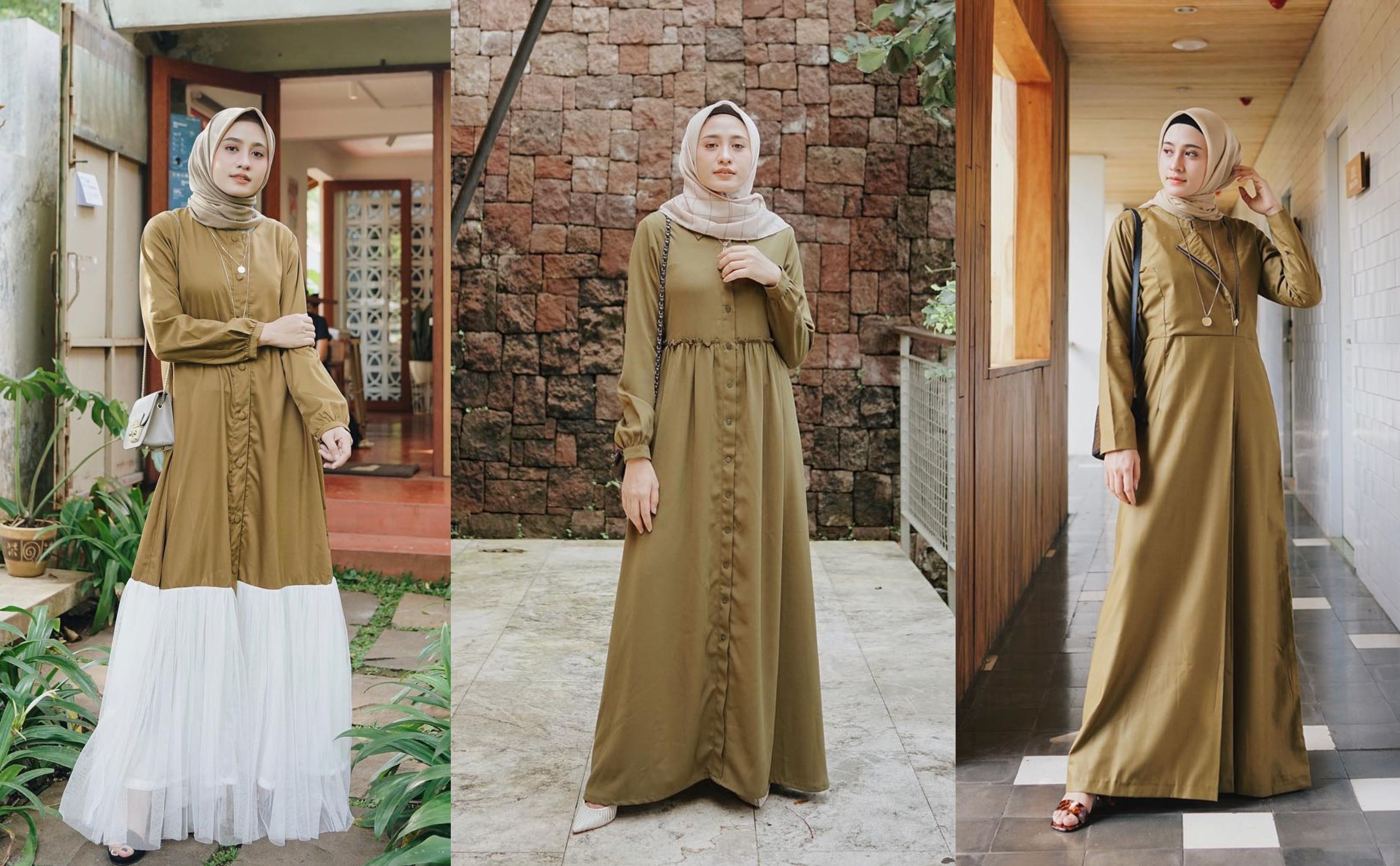 Adem Anti Boring Pakai 3 Model Dress Hijab Warna Hijau Olive Buat Lebaran Yuk Semua Halaman Cewekbanget