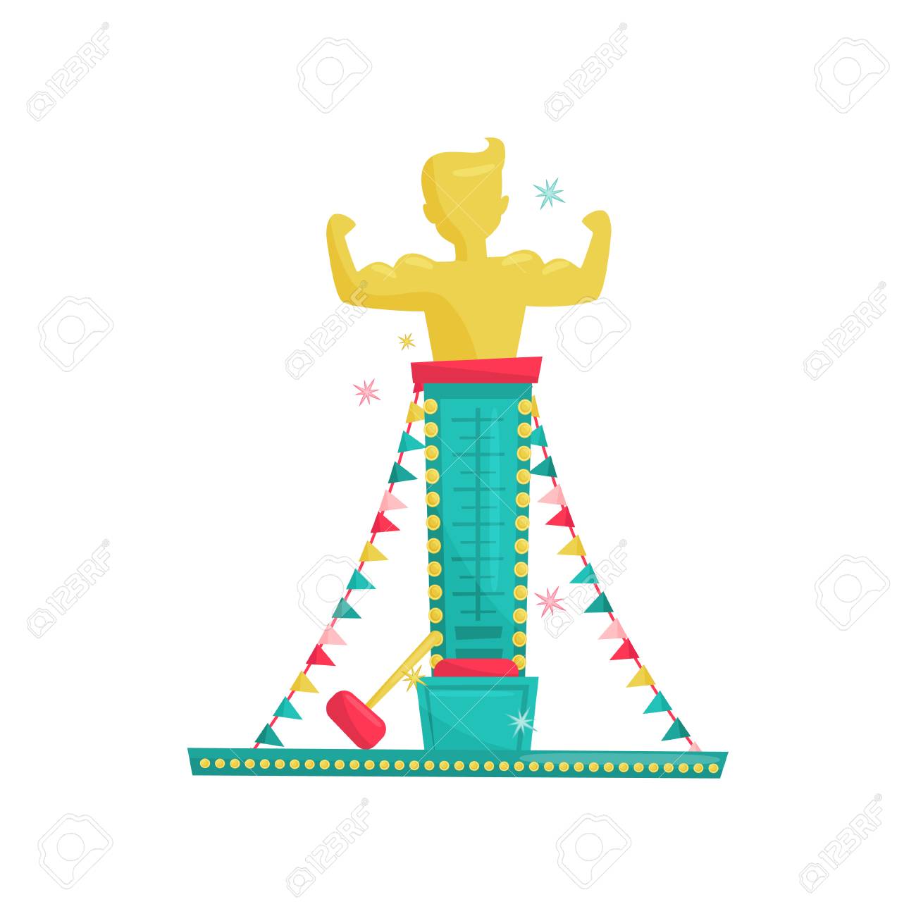 Cartoon Icon Of High Striker Attraction With Big Hammer And Muscular Man On Top Strength Tester Or Strongman Game Amusement Park Equipment Entertainment Theme Isolated Flat Vector Illustration Royalty Free Cliparts Vectors